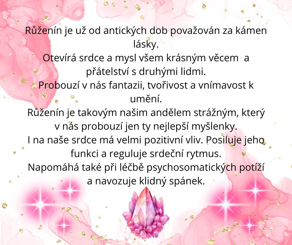 rituální pírko a kartičku s vlastnostmi růženínu. .