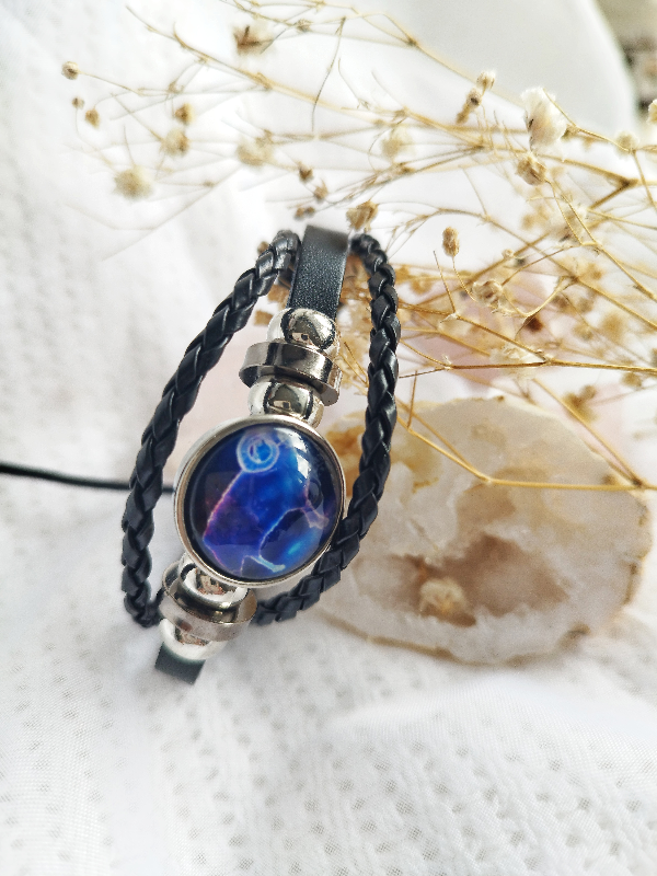 Náramek je vyroben z koženného materiálu a doplněn symbolem Berana.