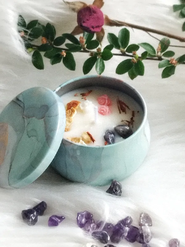 Po vyhoření svíčky vám zůstane krásná plechovka a kamínky ametystu.